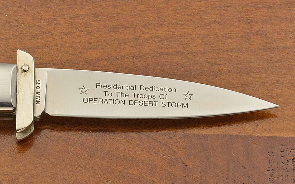 • Back side of the blade is marked "Presidential Dedication * To The Troops Of * OPERATION DESERT STORM"