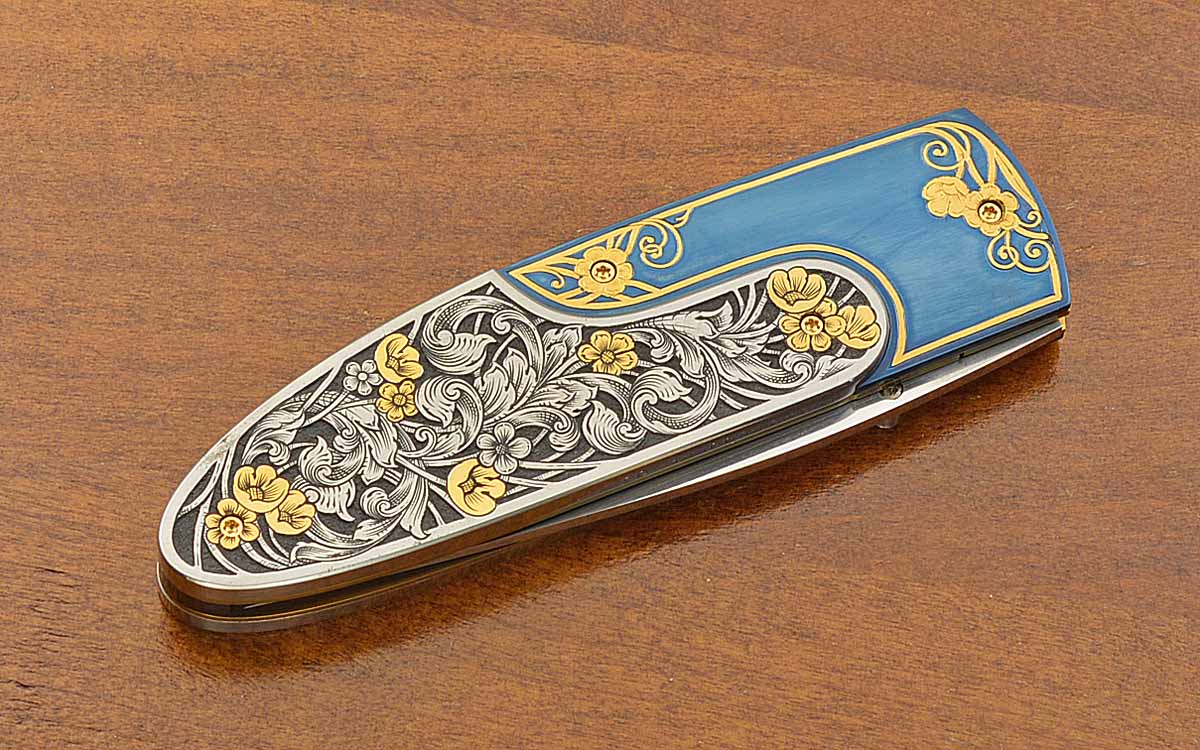 • Blued steel bolsters with gold engraving by GIL RUDOLPH
