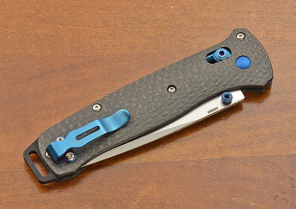- Sapphire Blue PVD coated fittings and reversible deep carry pocket clip