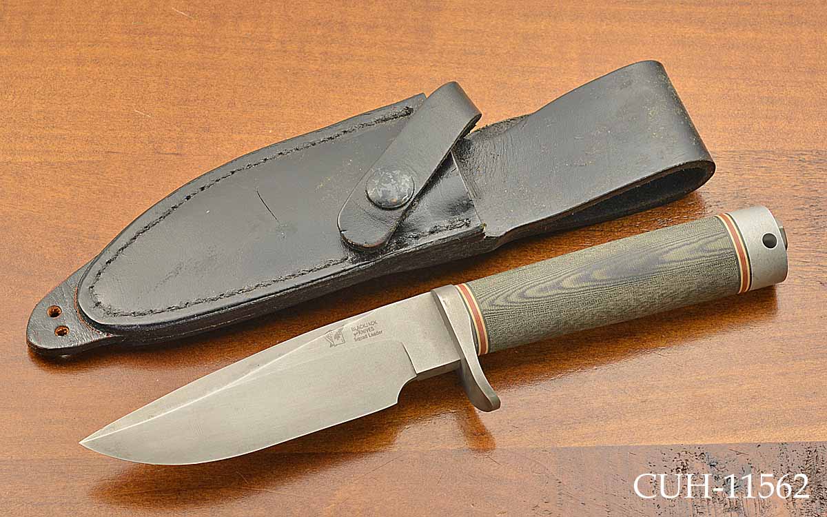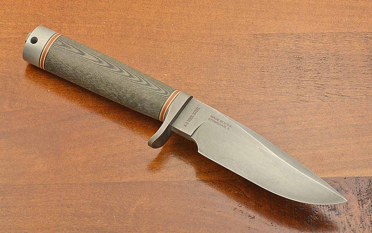 - 4 5/8" blade of A2 tool steel, bead blasted finish, 9 1/8" overall length