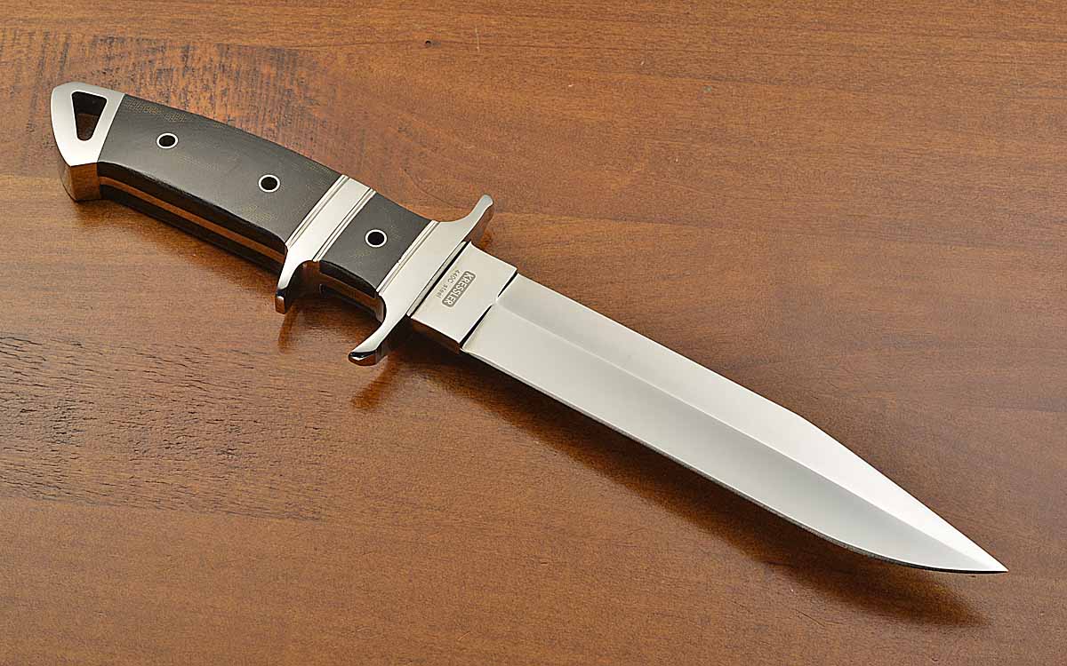 - 7 1/2" blade of 440C, mirror polish, 12 7/8" overall length