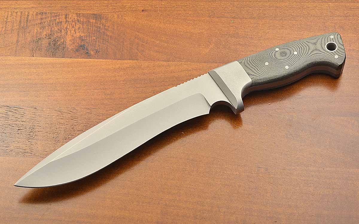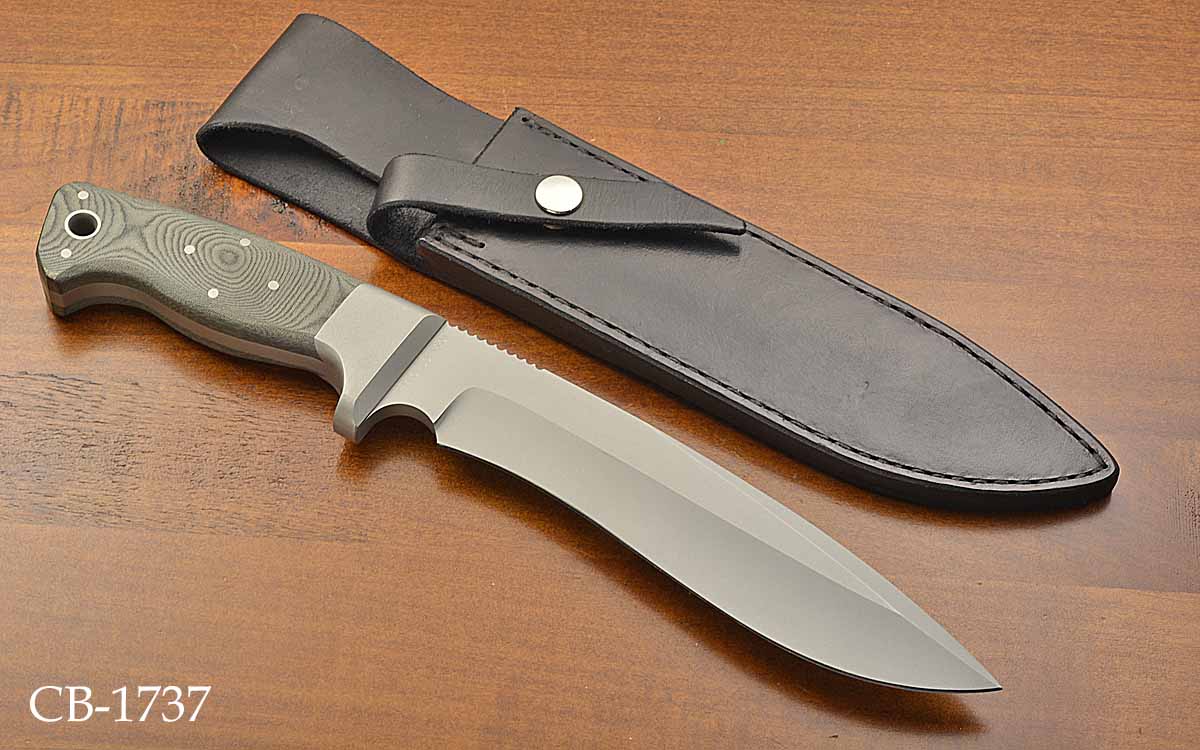 - 8 1/4" blade of stainless steel, 1/4" stock, bead blasted finish, 13 1/4" overall length