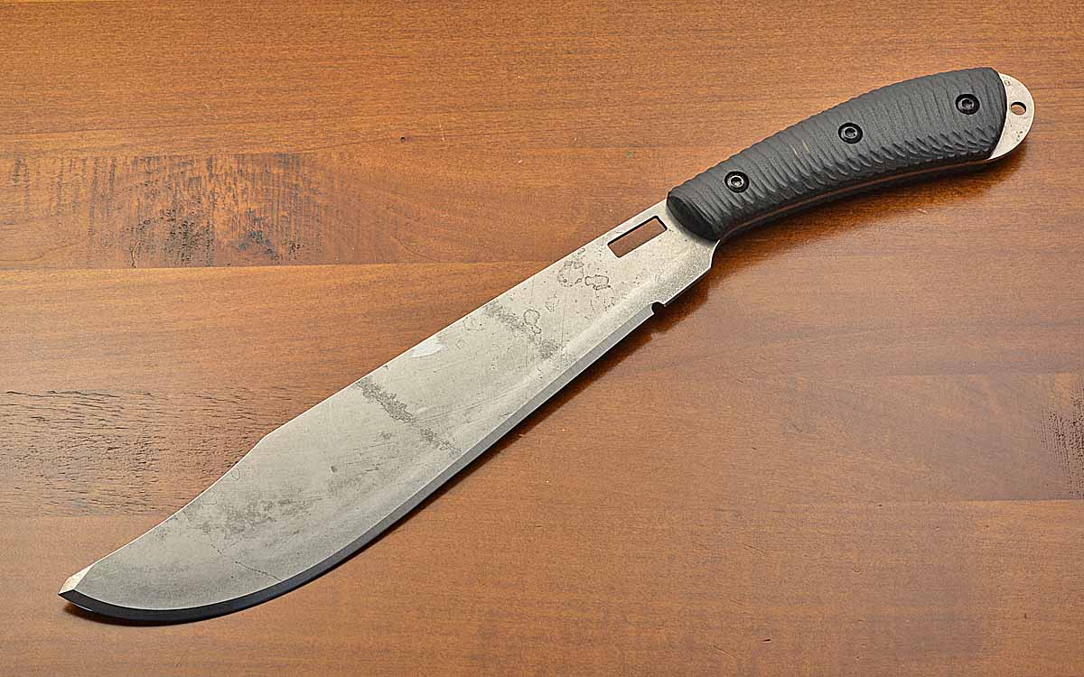 - 10 11/16" blade of 8670M carbon steel, from reclaimed sawmill blades, 16 5/8" overall length