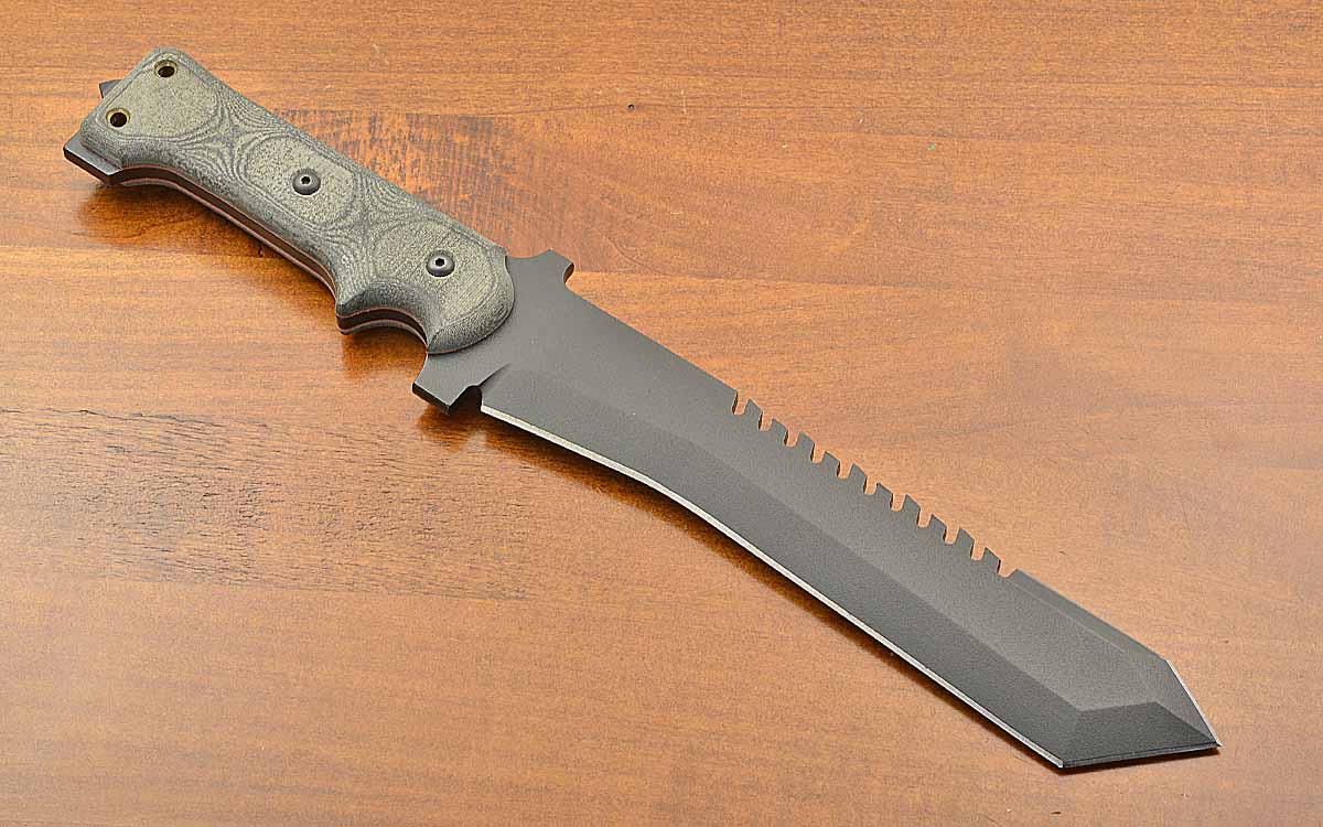 - Blade spine is sharpened and has 3 1/2" of heavy duty saw teeth