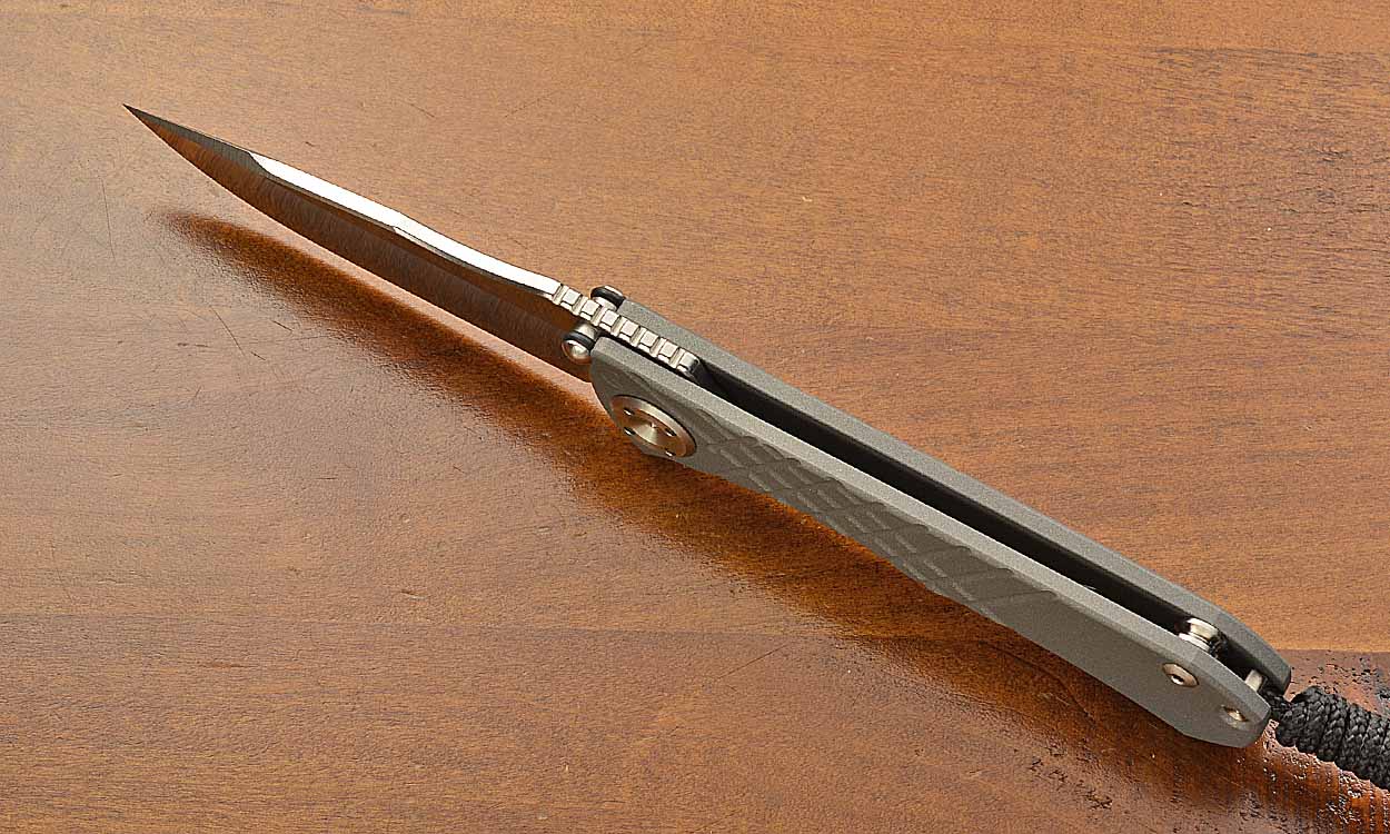 - Titanium frame and pocket clip with lock bar overtravel stop