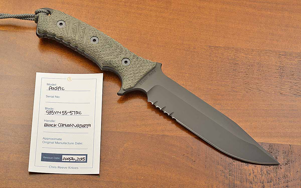 - 6" blade of CPM S35VN, with serrations, 11 1/2" overall length