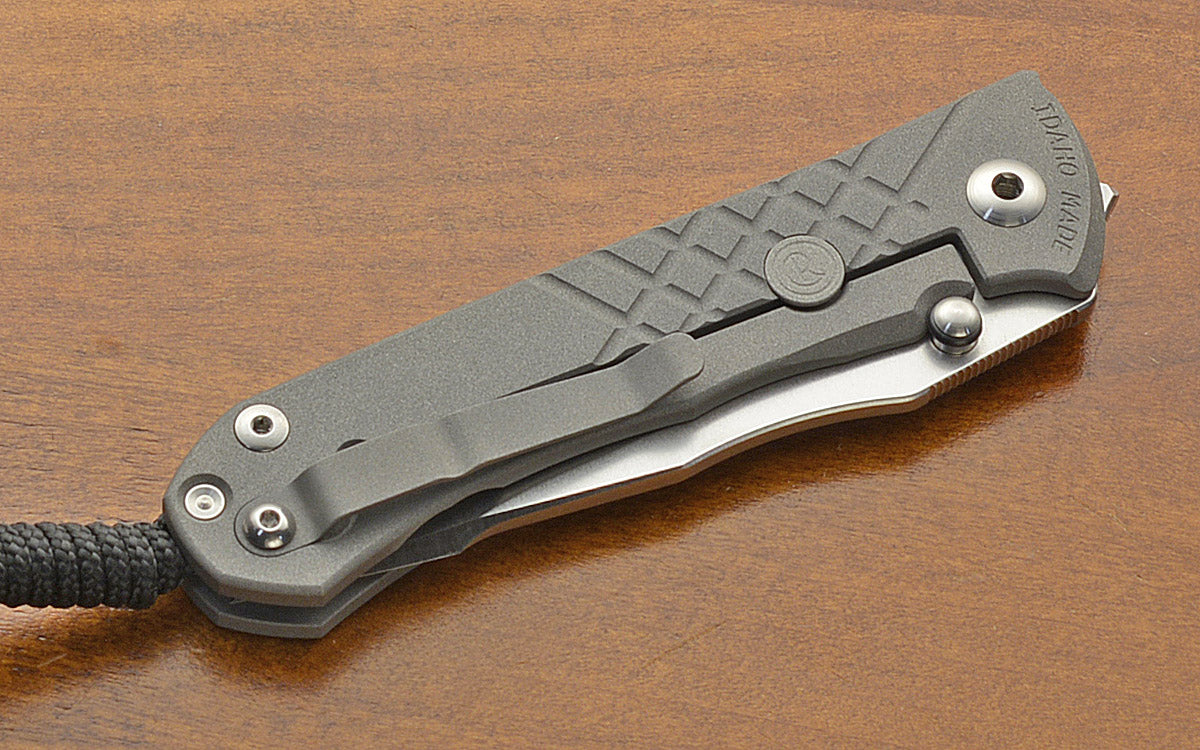 • Titanium frame and pocket clip with lock bar overtravel stop