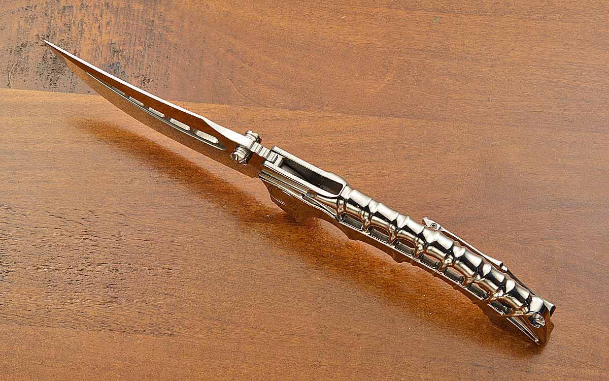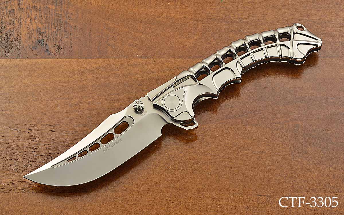 - 4 3/8" blade of M390, satin finish, 9 7/8" opened length