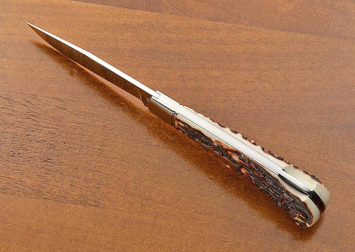 - Beautiful stag scales with stainless steel bullet escutcheon