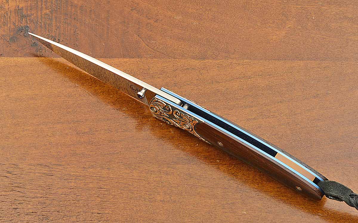 - 2 5/8" blade of 154CM, mirror polish, 6 1/8" opened length