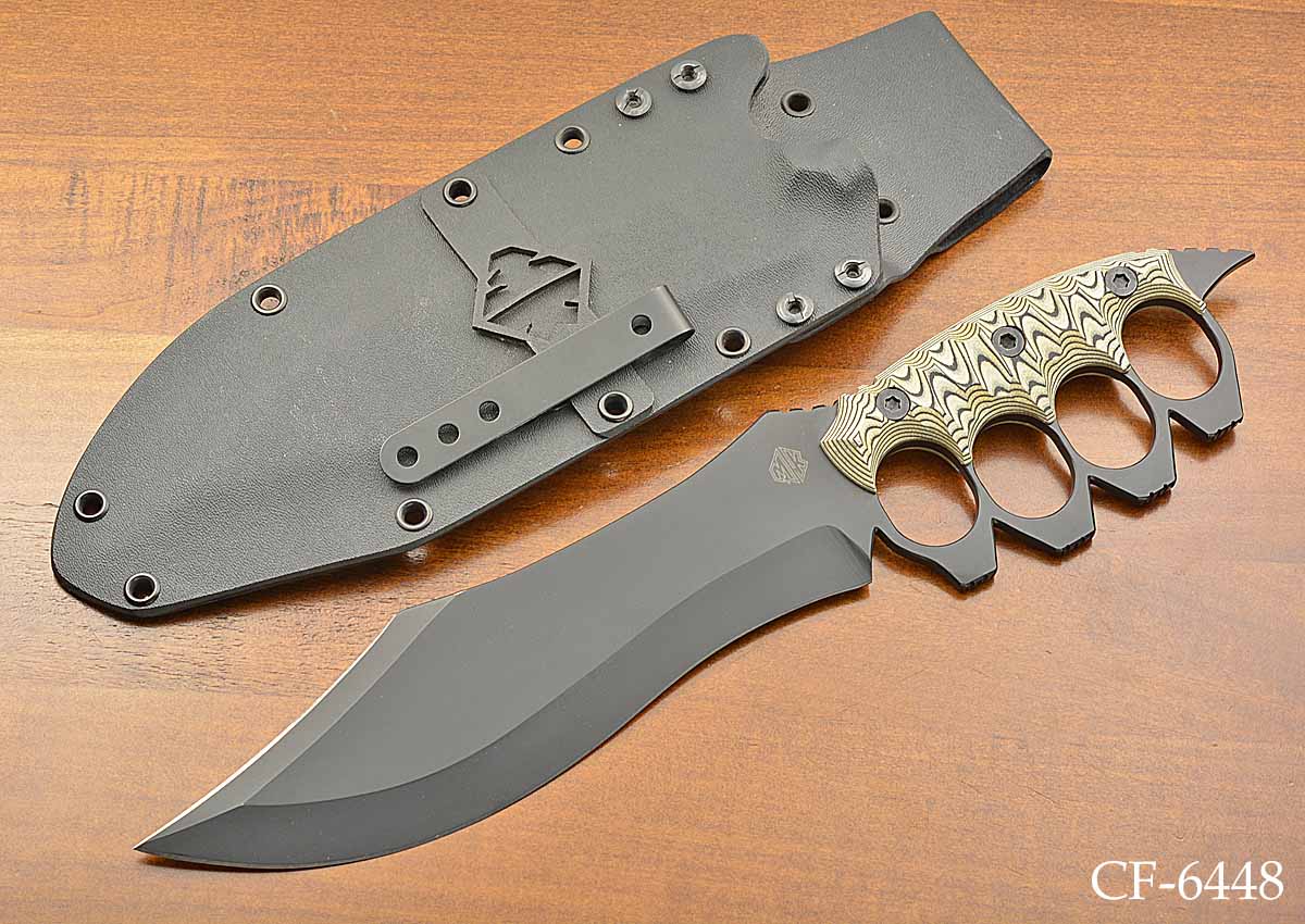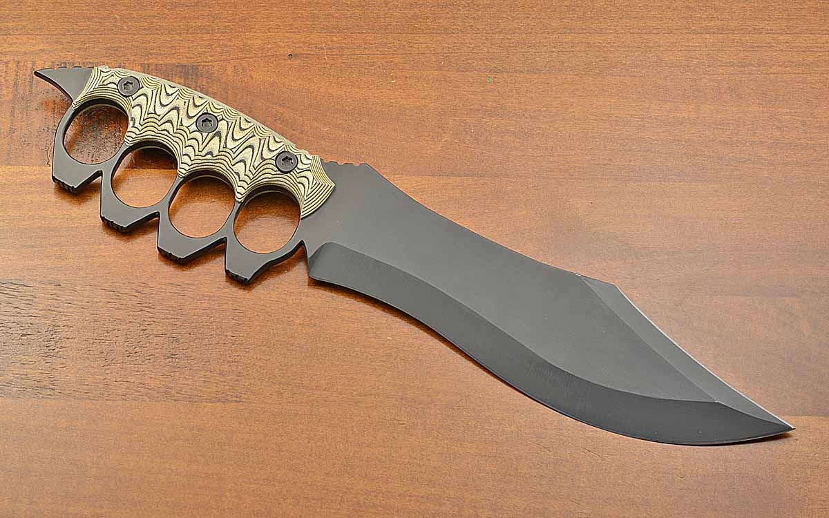 - 8 1/2" blade of 80CrV2 carbon steel, black Cerakote finish, 14" overall length