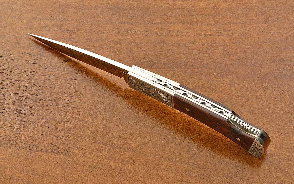 - 2 1/2" blade of stainless steel, mirror polish, 5 5/8" opened length