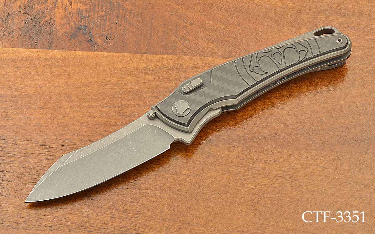 - 3 3/8" blade of M390, stonewashed finish, 7 7/8" opened length