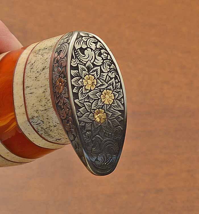 - Nickel silver guard and butt cap with engraving and gold inlays by BRUCE SHAW