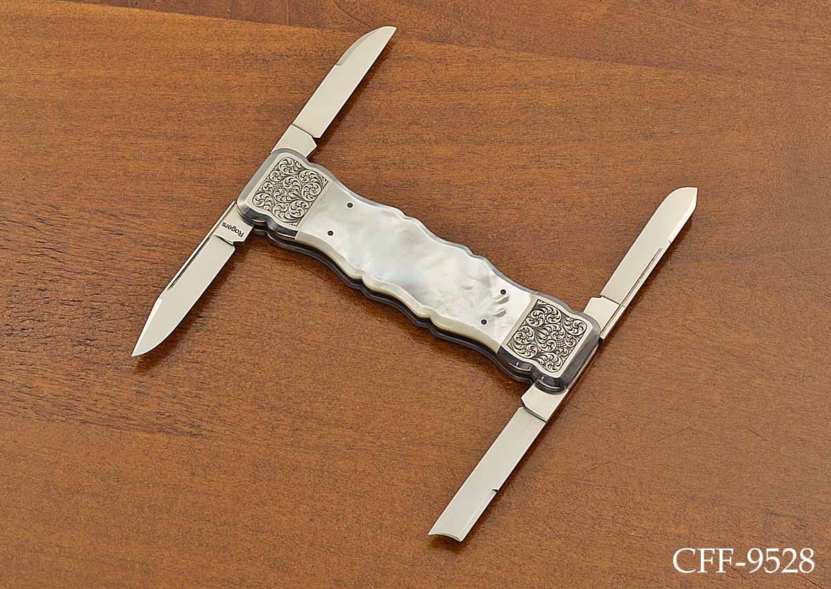 • 1 3/4" blades of stainless steel, satin finish, with half stops, 3 1/2" closed length
