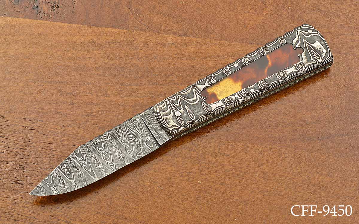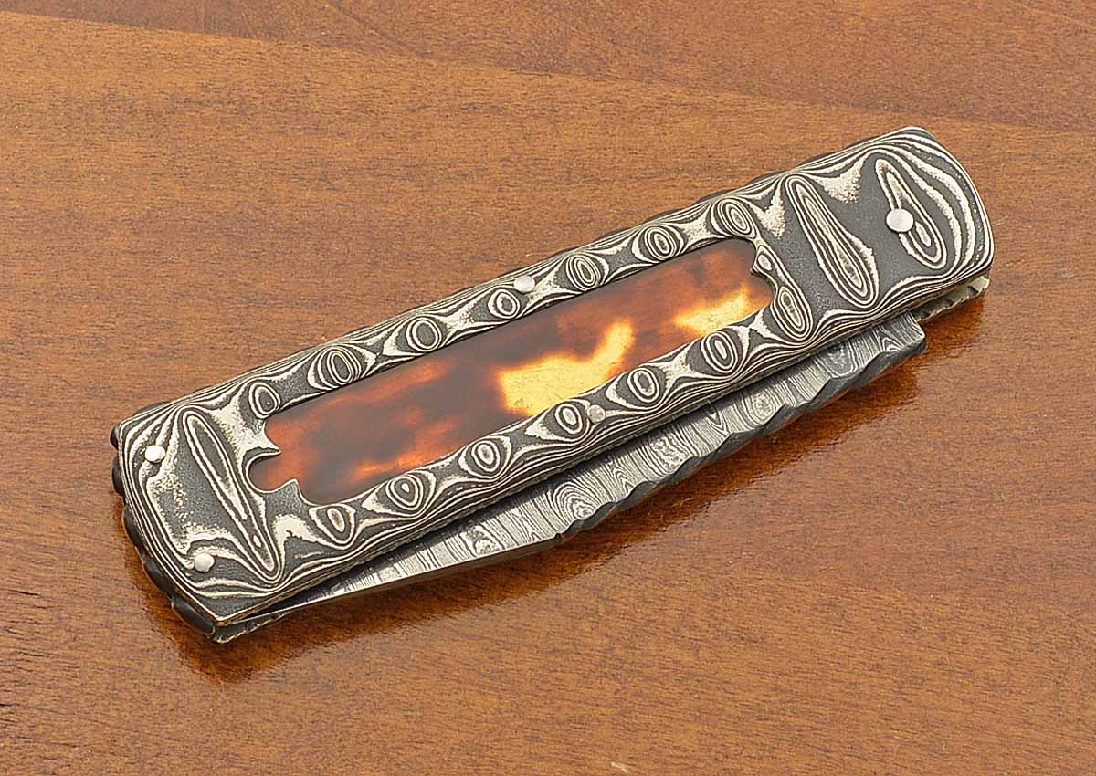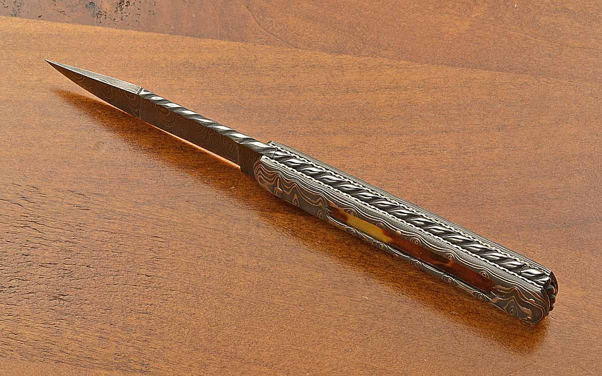 - 2 7/8" Damascus blade, 6 5/8" opened length