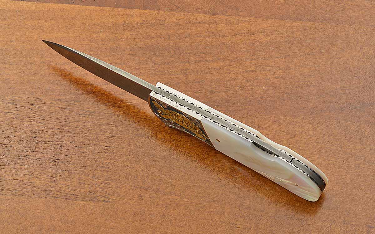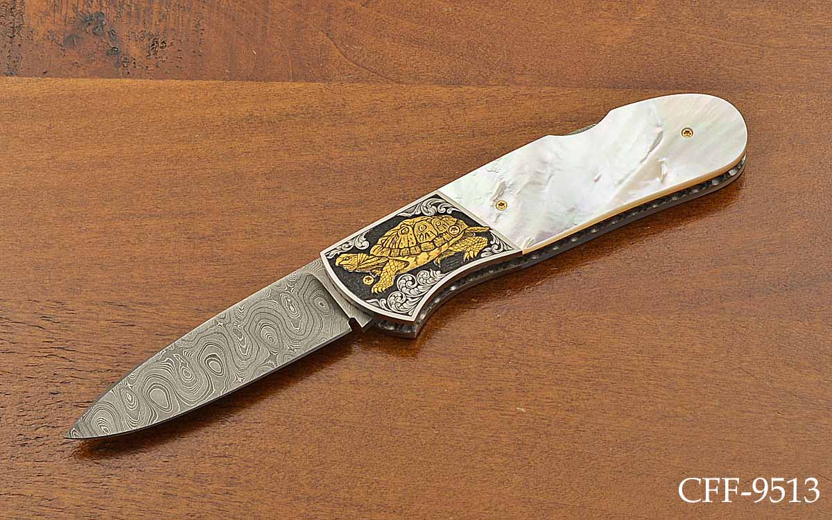• 2 5/8" Damascus blade, 6 1/2" opened length