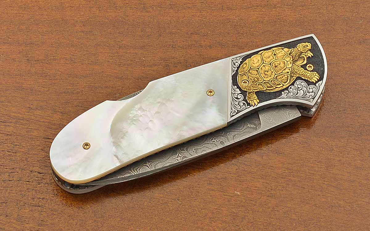 • Stainless steel bolsters with engraving and gold inlays by GIL RUDOLPH