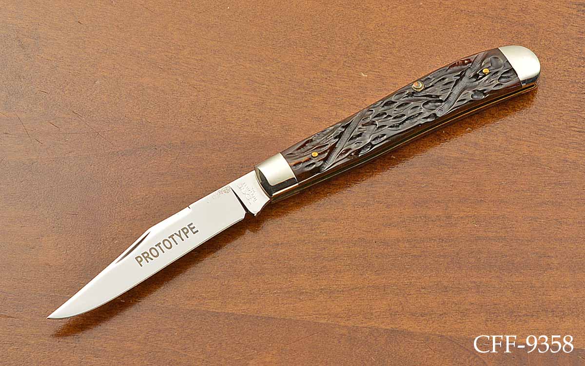 - 2 3/4" blade of carbon steel, mirror polish, with half stop, 3 1/2" closed length