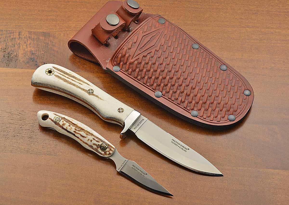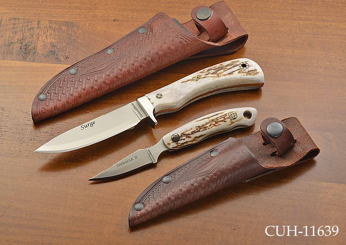 - Includes individual tooled leather sheaths, a side-by-side leather sheath, and 2 boxes