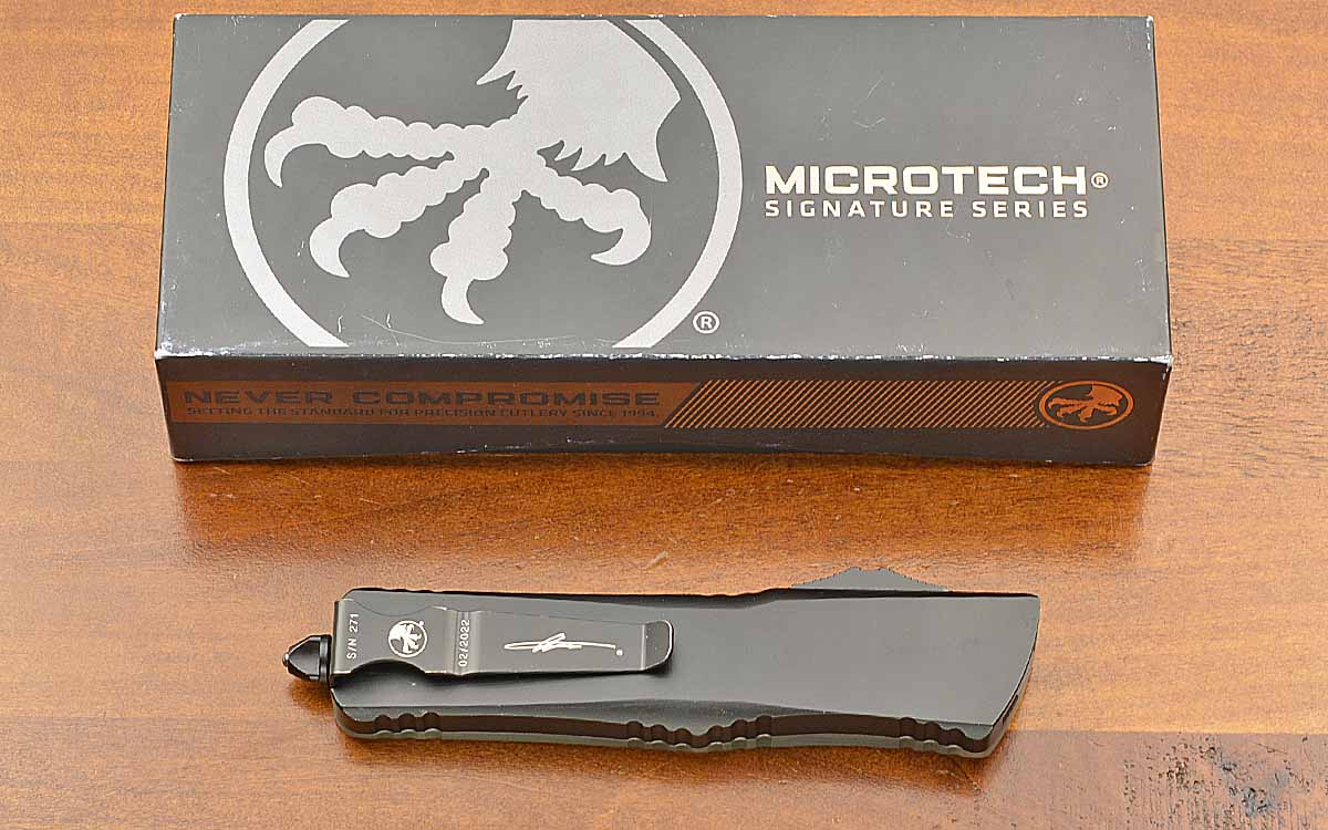 - 1 15/16" blade of M390, two-tone black and satin finish, 5 1/2" opened length