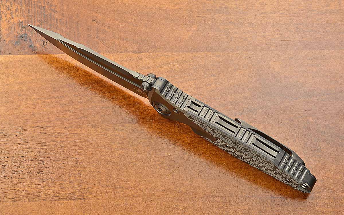 - Milled and black DLC coated titanium frame, back spacer, and pocket clip with steel lock face insert