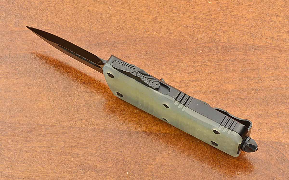 - Black coated slide, pocket clip, and finial with ball bearing window breaker