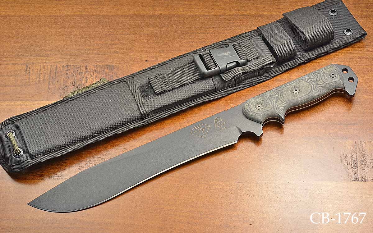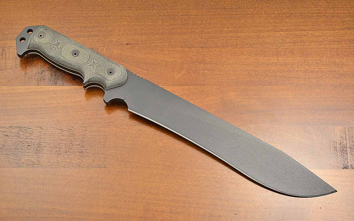 - 10 3/4" blade of 1095 carbon steel, black traction coated, 16 1/2" overall length