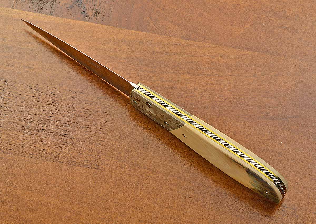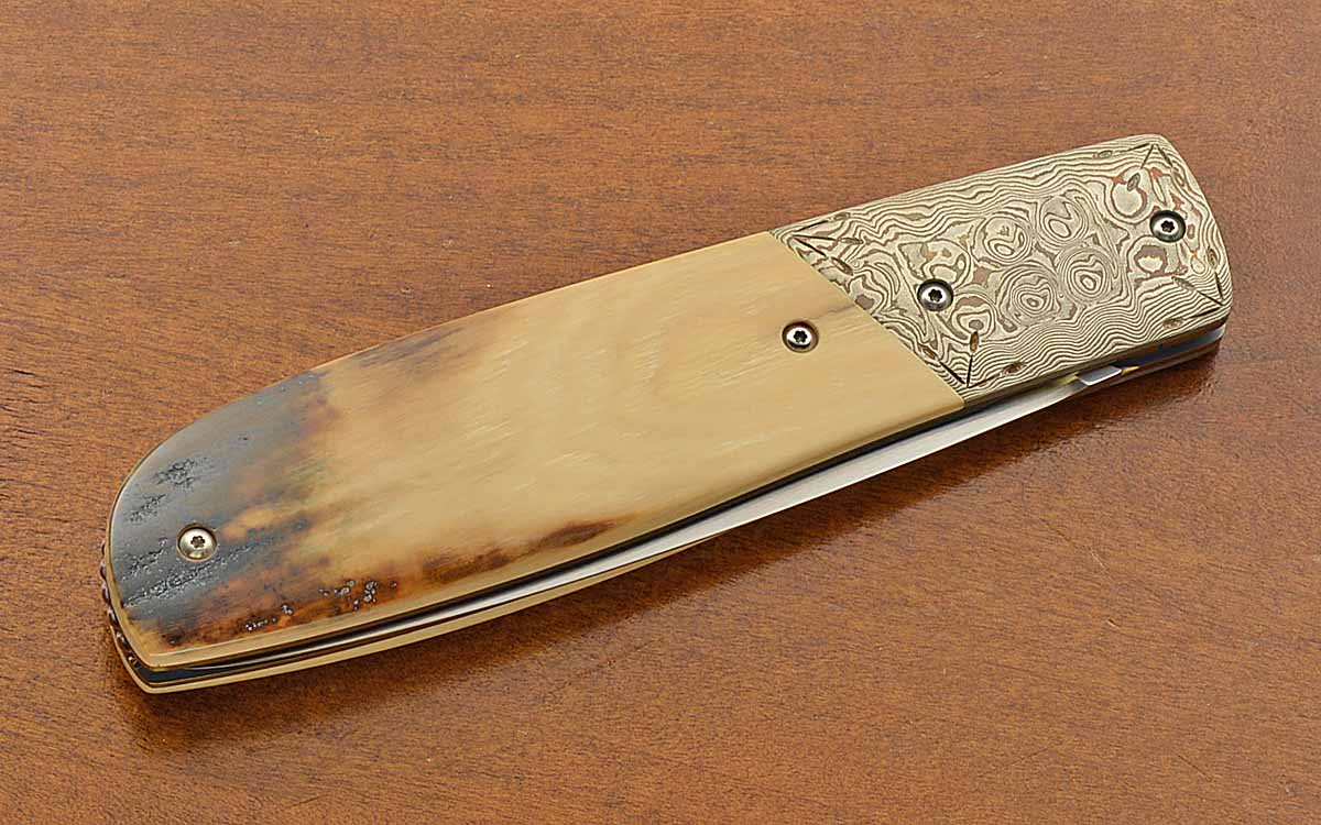 - Mokume bolsters with engraving in the corners