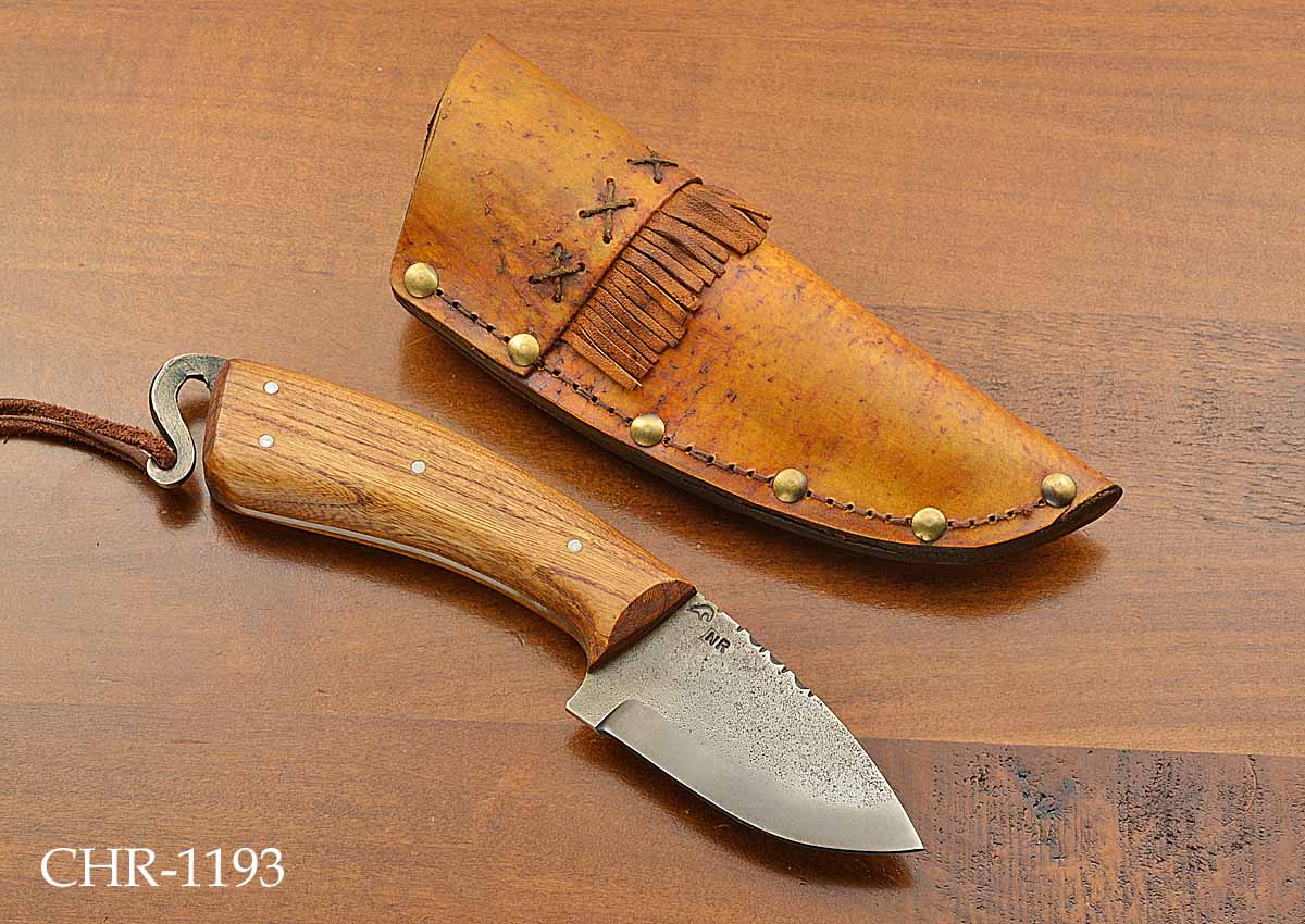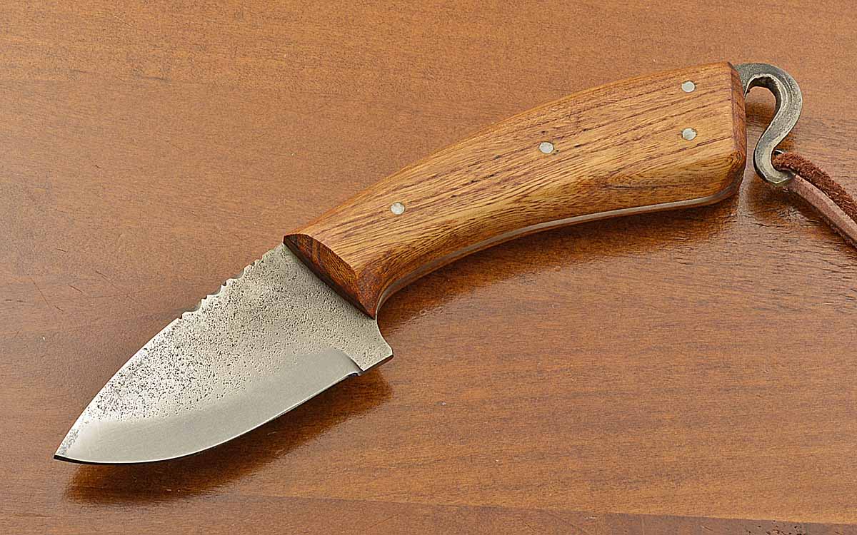 - 3" blade of hand-forged L6 carbon steel, antiqued patina, 8 1/8" overall length