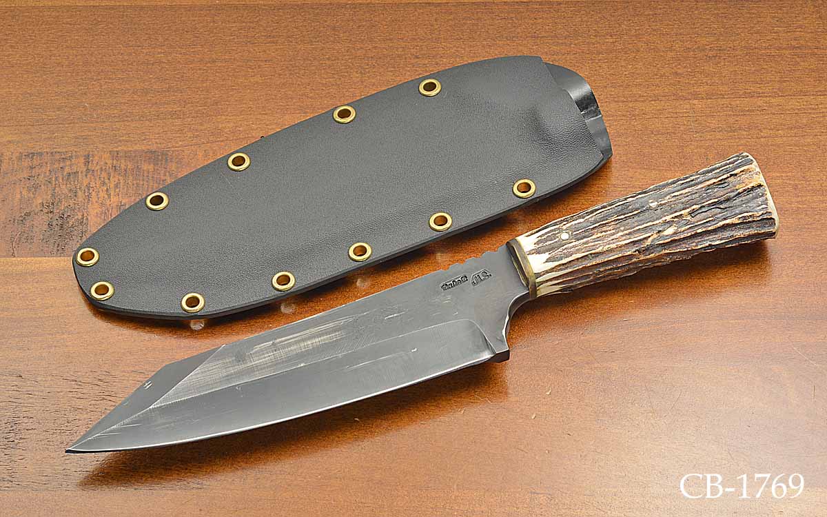- 7 5/8" blade of carbon steel, forged by maker, black coated finish, 11 7/8" overall length