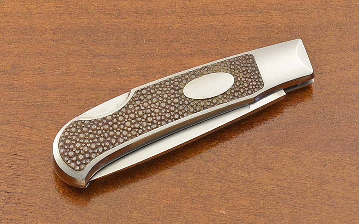- Stainless steel interframe with ray skin inlays and stainless steel escutcheons