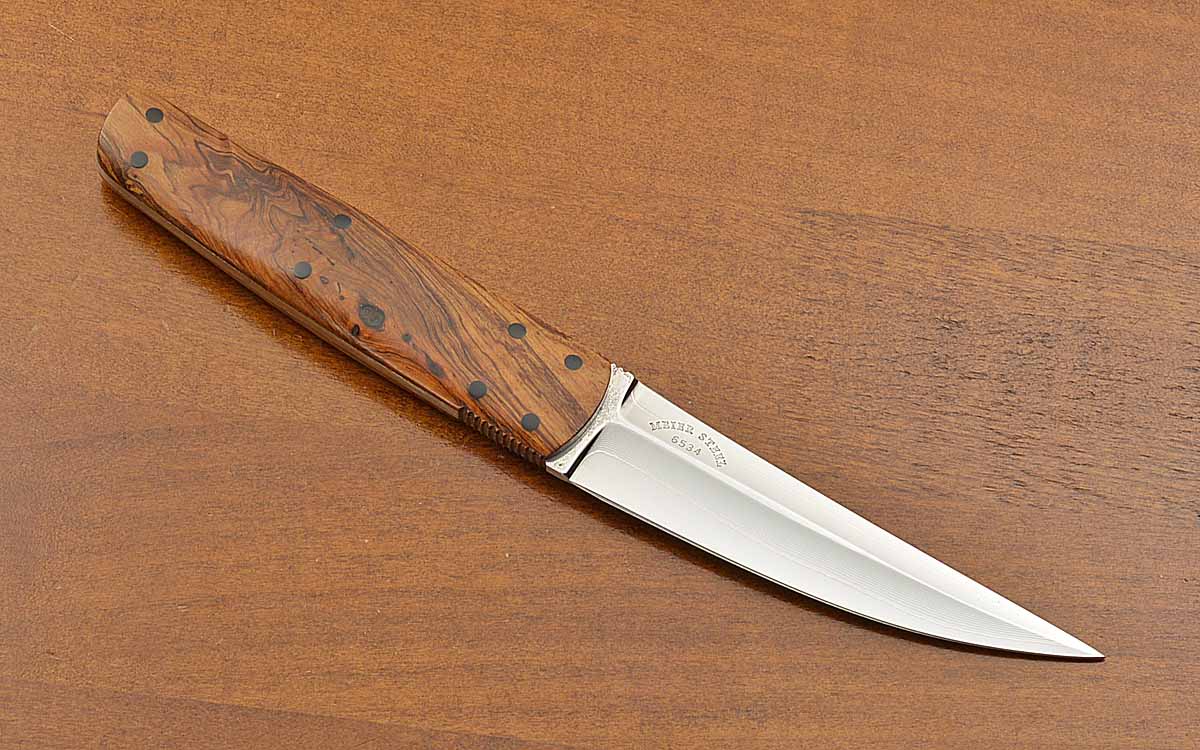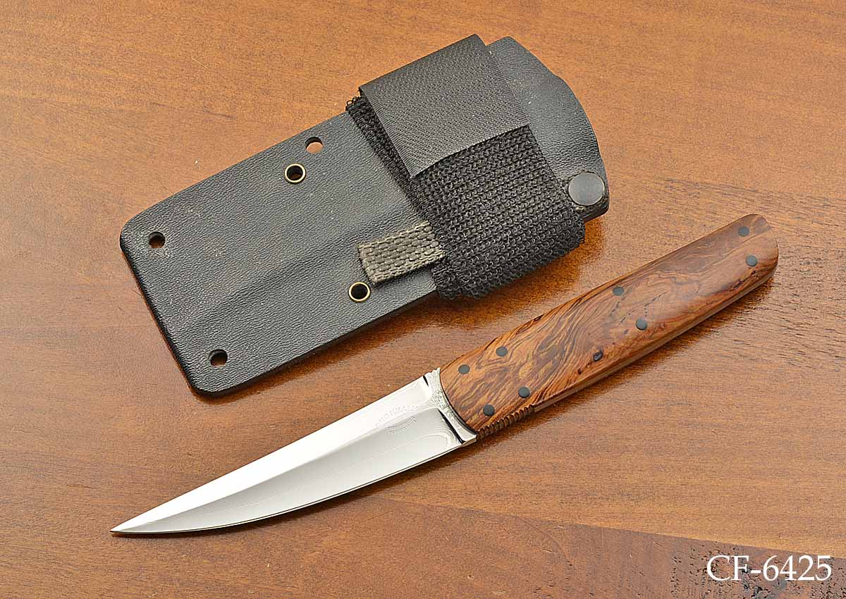 - Bocote wood scales with micarta pins