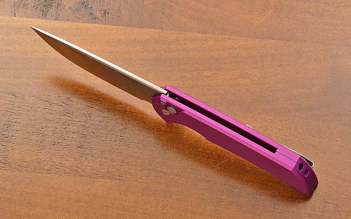 - 3 5/8" blade of MagnaCut, stonewashed finish, 8 1/4" opened length