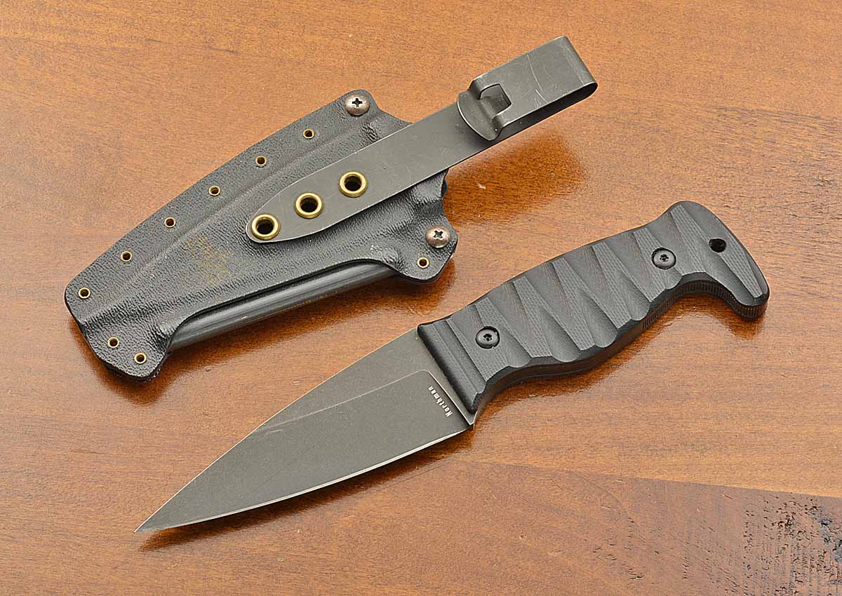- Sculpted black G10 scales