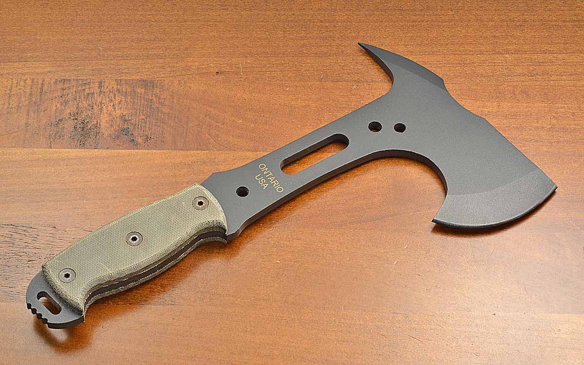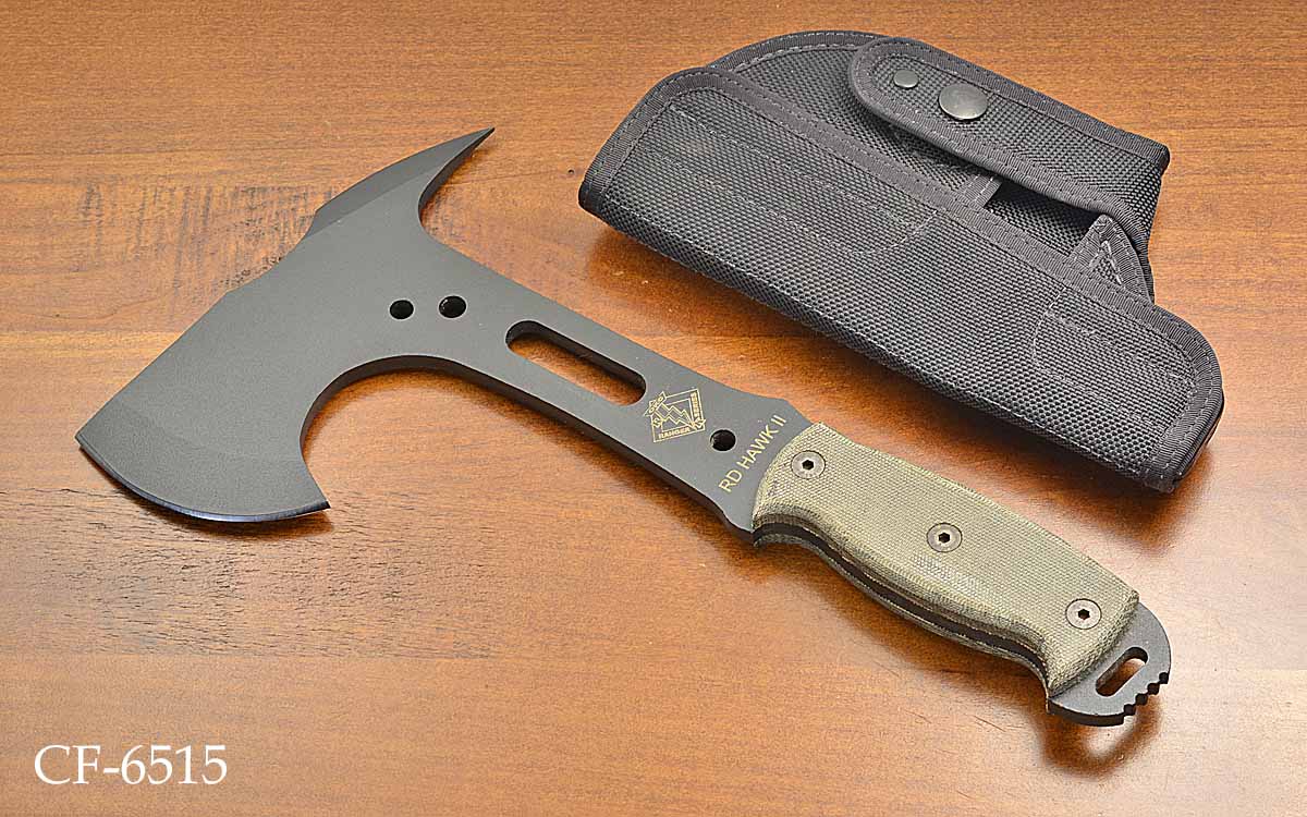 - 3 1/4" cutting edge, 6 1/2" head of 1075 carbon steel, black powder coated finish, 12" overall length