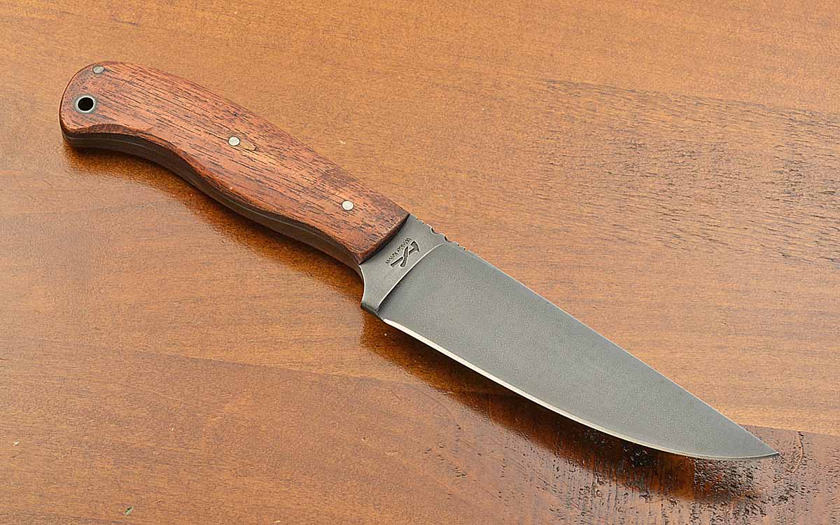 • 5 1/8" blade of 80CrV2 carbon steel, black oxide finish, 9 1/2" overall length