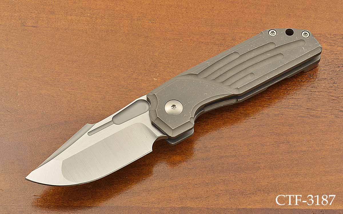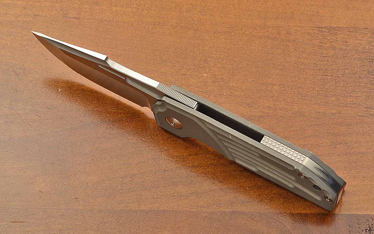 - 2 15/16" blade of M390, satin finish, 7 1/8" opened length