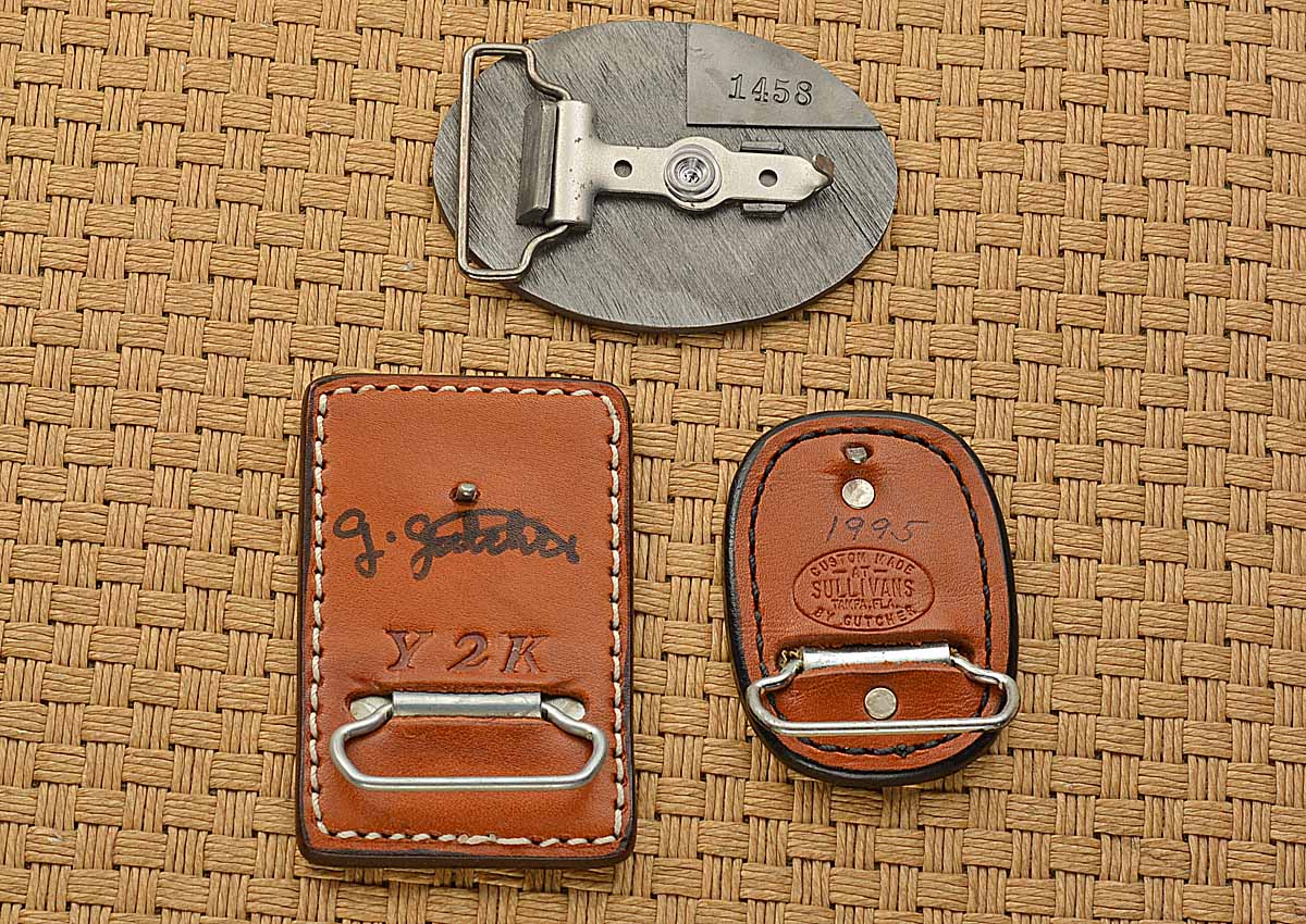 - Includes one Randall Made Knives leather belt buckle custom made by GREG GUTCHER, one The Randall Knives Society leather belt buckle custom made by GREG GUTCHER, and one The Randall Knives Society pewter belt buckle serial #1458