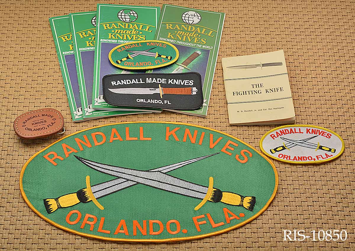 • Includes a 30th, 33rd, 34th, and 35th printing of RMK Catalog, a 1969 edition of The Fighting Knife brochure by W.D. Randall Jr and Col. Rex Applegate, a custom leather belt buckle by GREG GUTCHER, and assorted patches, ranging from 4 1/4" across to 14" across.