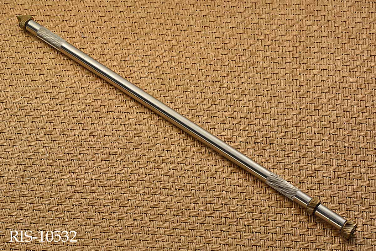 - 18" hollow stainless steel tube spear with knurled brass skull crusher tip and knurled brass top with compass installed