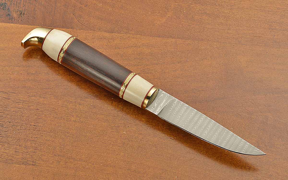- Rosewood and polished reindeer antler handle with fine red and fancy filed brass spacers