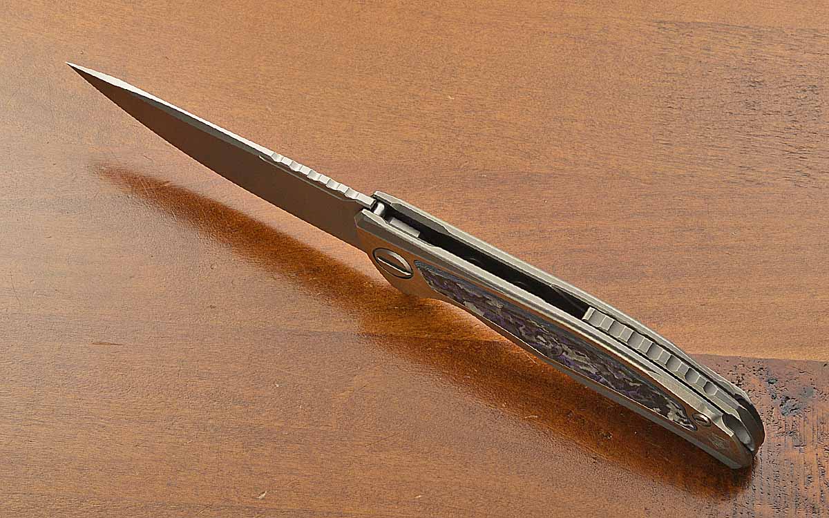 - 3 3/4" blade of M390, glass beaded finish, 8 3/4" opened length
