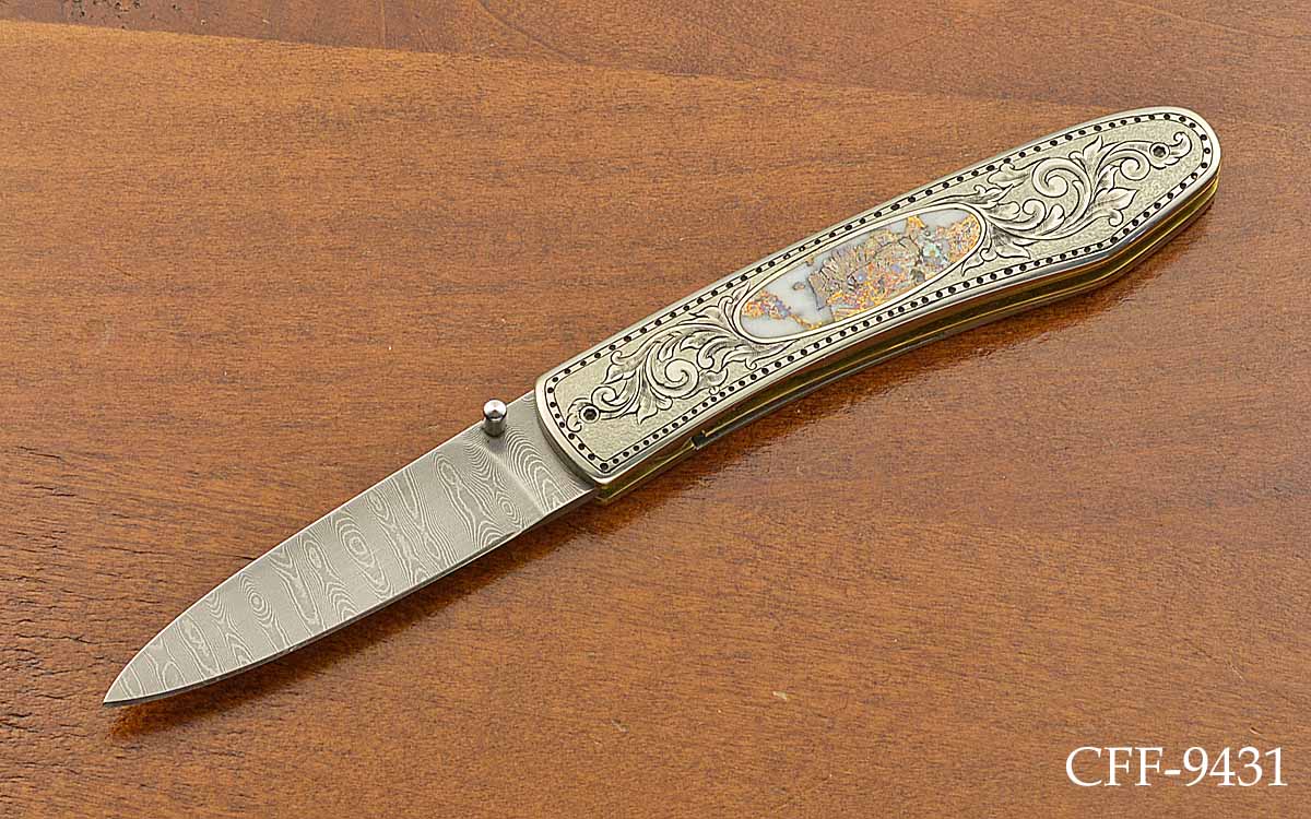 - 2 3/8" Damascus blade, 5 7/8" opened length