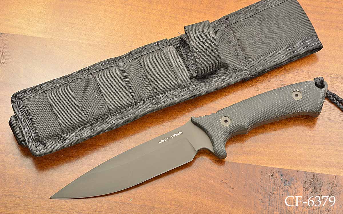- Textured black micarta handle