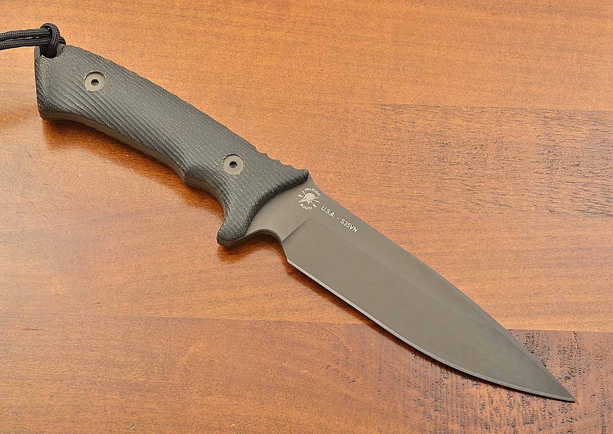 - 6" blade of S35VN, black Tungsten DLC coating, 11 3/8" overall length