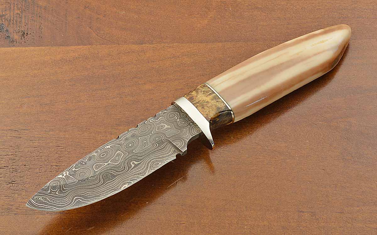 - Fossil walrus ivory handle with California buckeye wood spacer