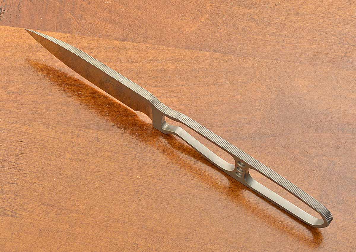 • 3 1/4" blade of unknown steel, machine satin finish, 7 1/2" overall length