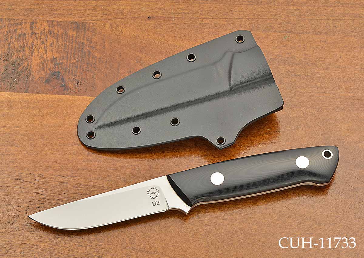 3 3/8" blade of D2 tool steel, 7 1/2" overall length