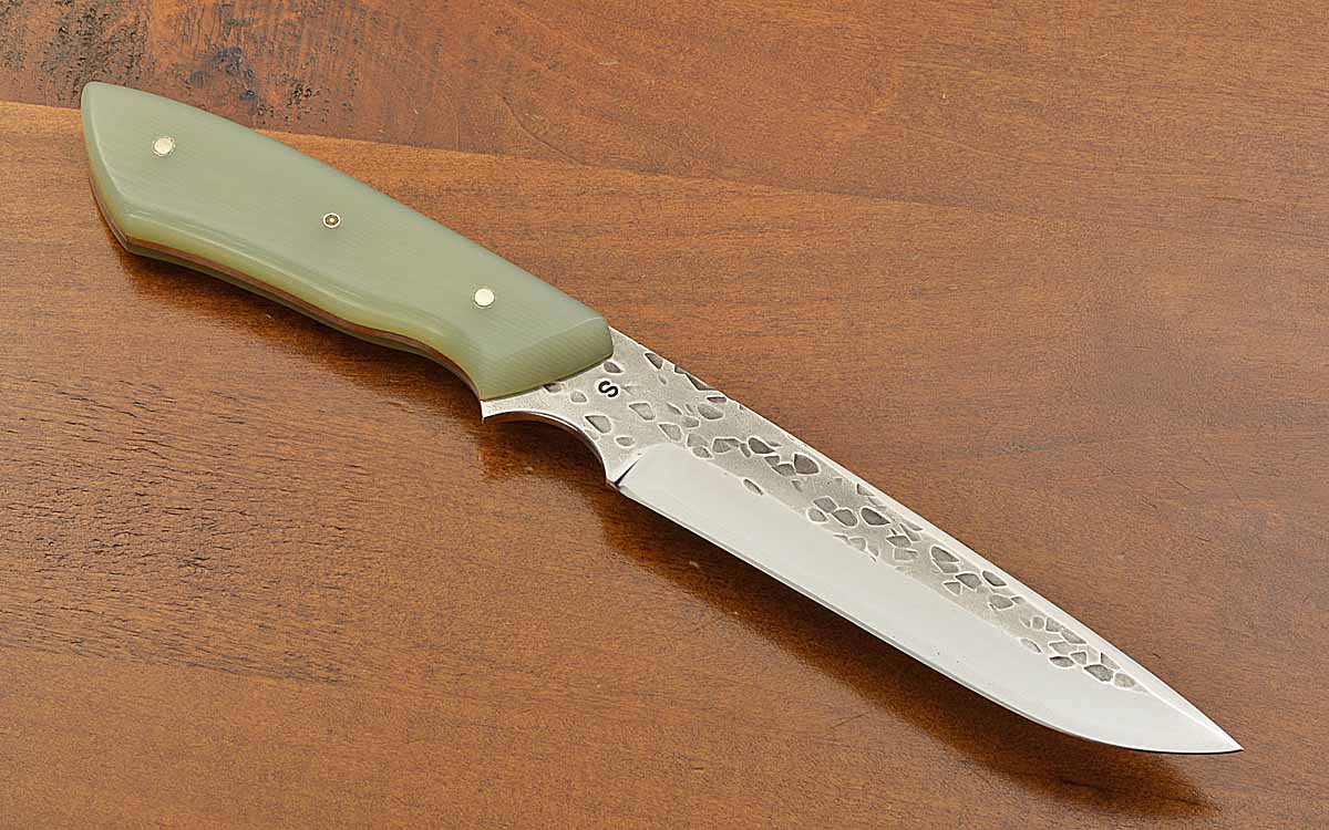5 1/4" san-mai blade, rough forged finish, 9 3/4" overall length
